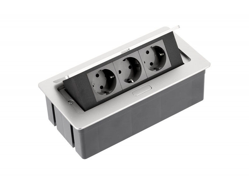 Konnektor felbillenő 1x230V+2USB fekete